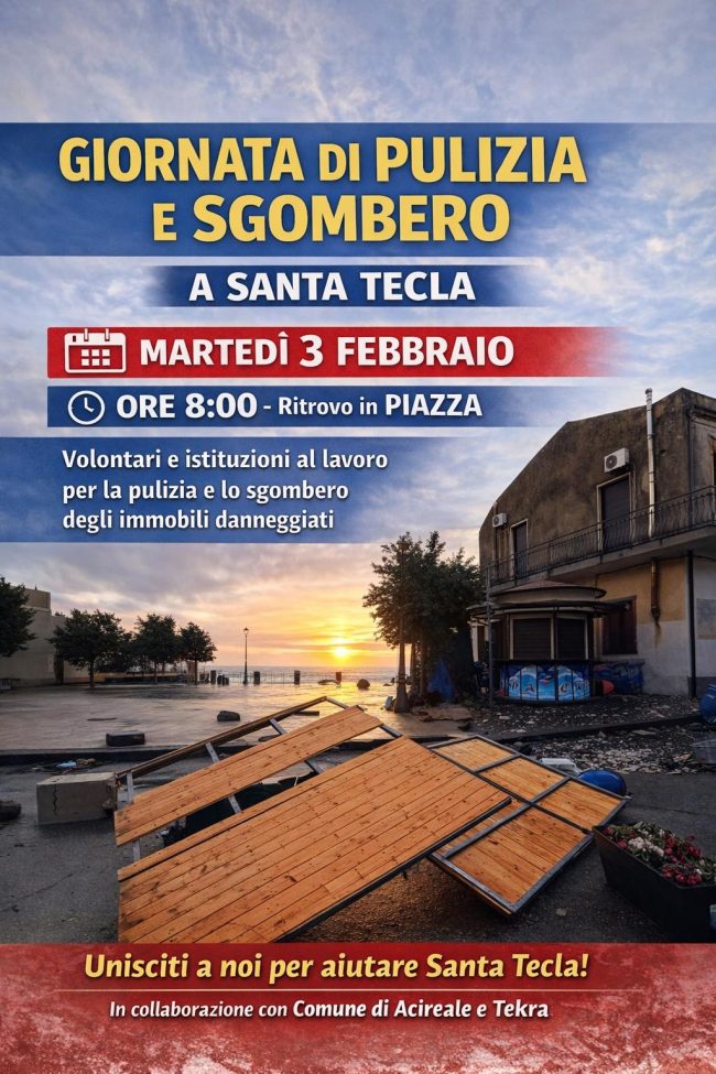Il sindaco Barbagallo sottolinea l’importanza del coinvolgimento diretto del mondo associativo e del volontariato: Come già dimostrato a Stazzo nei giorni scorsi, è fondamentale fare rete. Il contributo di associazioni e cittadini rappresenta un gesto concreto di solidarietà e un primo passo per aiutare anche Santa Tecla ad avviare un percorso di ripristino delle condizioni di vivibilità“.