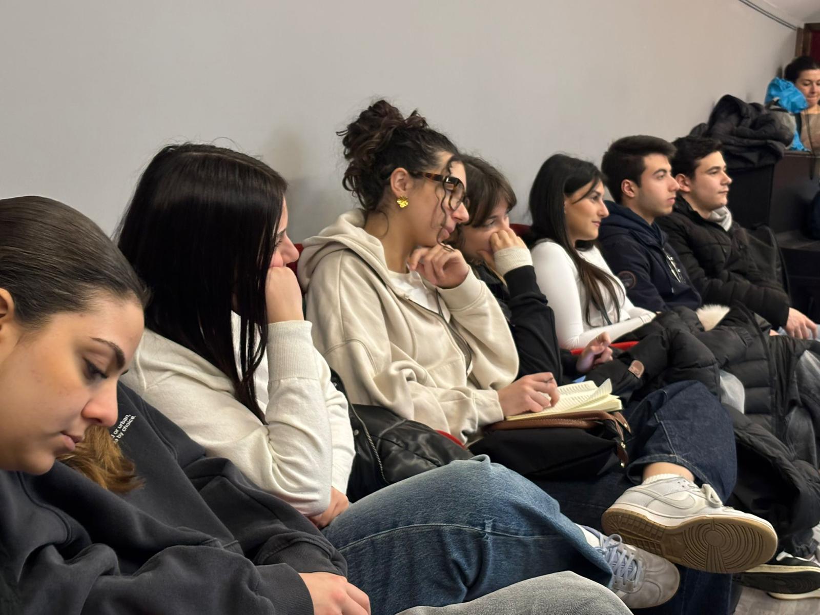 Un momento centrale dell’incontro è stato dedicato alla figura del regista Orofino ha spiegato che questa professione nasce nel Novecento, quando il teatro smette di essere soltanto interpretazione del testo e diventa anche ricerca, visione e progetto. Il teatro del ‘700 è diverso da quello del primo Novecento, in cui vi è molto non detto che il regista deve comunque portare in scena. Orofino ha sottolineato che il suo lavoro nasce da una serie di domande: sul senso dell’opera, sui personaggi, sul messaggio da comunicare al pubblico. Il suo lavoro richiede studio, approfondimento e capacità di guidare gli attori non in modo autoritario ma attraverso la comprensione della psicologia dei personaggi. Solo dopo un lungo lavoro di analisi e confronto, infatti, gli attori vengono orientati nella costruzione della scena. Gli studenti hanno seguito con attenzione, mostrando curiosità e partecipazione. Numerose sono state le domande, in particolare sulle difficoltà e sulle responsabilità della professione del regista, sulle sfide legate alla realizzazione di uno spettacolo.