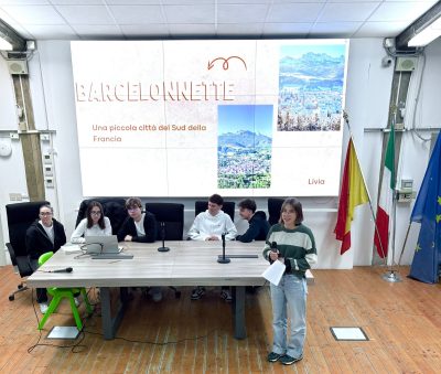 A seguire gli studenti francesi hanno presentato attraverso delle slide le loro città in lingua italiana. È seguita l’esecuzione al pianoforte di un brano musicale prima di un alunno francese e poi di uno italiano, l’accoglienza si è conclusa sulle note di “Volare” cantata da tutti gli alunni.