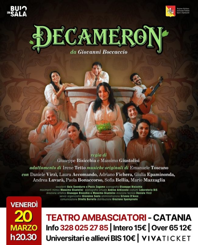 CATANIA – Il capolavoro di Decameron torna a teatro in una nuova versione firmata dalla scuola e compagnia teatrale Buio in Sala. Lo spettacolo andrà in scena venerdì 20 marzo alle ore 20.30 sul palco del Teatro Ambasciatori, dopo aver riscosso grande successo tra studenti e docenti in tutta la Sicilia.