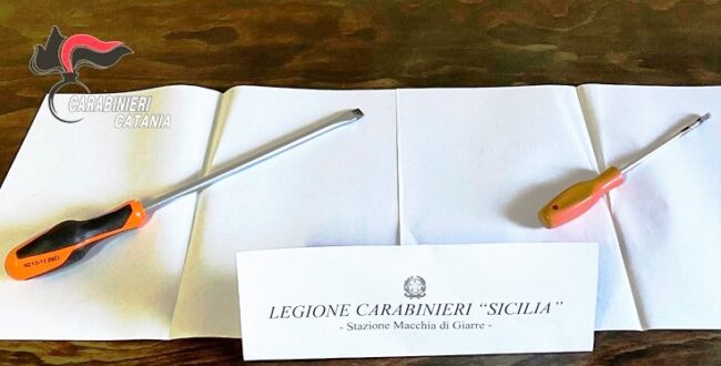Quest’ultimo, dopo essersi reso conto della presenza dei militari è balzato nuovamente in auto tentando insieme la fuga agli altri che erano già a bordo. Bloccata sul nascere dai carabinieri che hanno immediatamente proceduto a una perquisizione rinvenendo due grossi cacciaviti, rispettivamente di 39 e 26 centimetri.