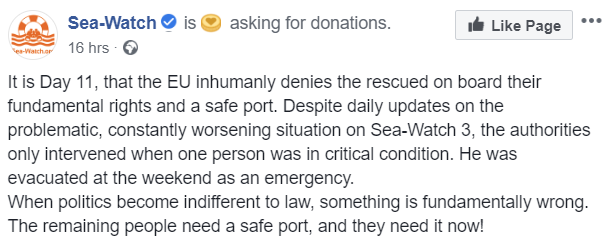 D’altro canto, le condizioni sull’imbarcazione sembra peggiorare di giorno in giorno. Ieri un appello dell’Ong sui social che, dopo aver ricordato l’unico intervento effettuato dalle autorità competenti per una persona con problemi di salute, fa luce sulla condizione degli altri passeggeri, invitando a trovare una soluzione che possa garantire anche la loro sicurezza: “Quando la politica diventa indifferente alla legge, qualcosa fondamentalmente non va. Le persone rimaste a bordo necessitano di un porto sicuro e ne hanno bisogno ora!”.