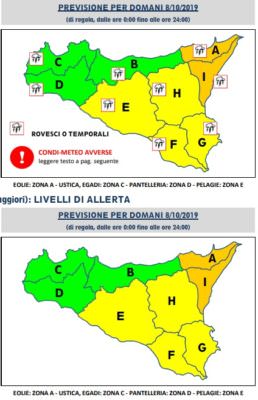Le scuole e gli altri uffici pubblici svolgeranno regolarmente le normali attività. Le piogge continueranno per tutta la giornata, con un intensificarsi durante le ore serali, quando verranno interessate anche le città di Siracusa, Enna e Caltanissetta.