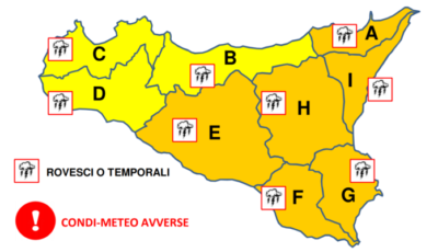 CATANIA – Dopo giorni di maggiore stabilità meteo, ritorna a gamba tesa il maltempo su tutta la Sicilia. Per la giornata di domani, 24 novembre, il dipartimento regionale della Protezione Civile della Presidenza della Regione Siciliana ha emanato per i settori A, E, F, G, H, I, concernenti le province di Caltanissetta, Catania, Enna, Messina, Ragusa e Siracusa, allerta meteo arancione. Per le restanti province di Agrigento, Palermo e Trapani, l’allerta è gialla.