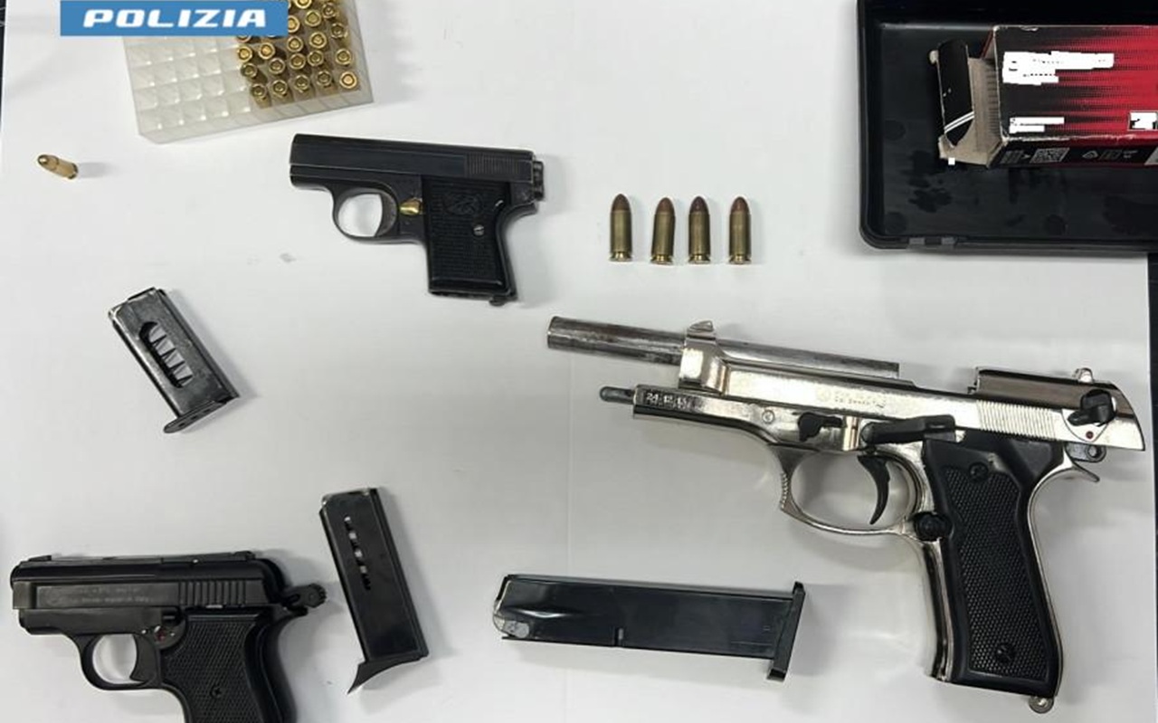 I poliziotti hanno poi deciso di effettuare una perquisizione domiciliare, che ha consentito di rinvenire e sequestrare le tre pistole e relativo munizionamento.