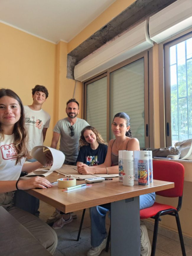 CATANIA – A pochi giorni dalla ripresa del nuovo anno scolastico, alcuni studenti del Liceo classico “Nicola Spedalieri” di Catania che frequentano le classi quarte e quinte, sono già felicemente a lavoro per la realizzazione di un murales nella parete esterna della scuola.