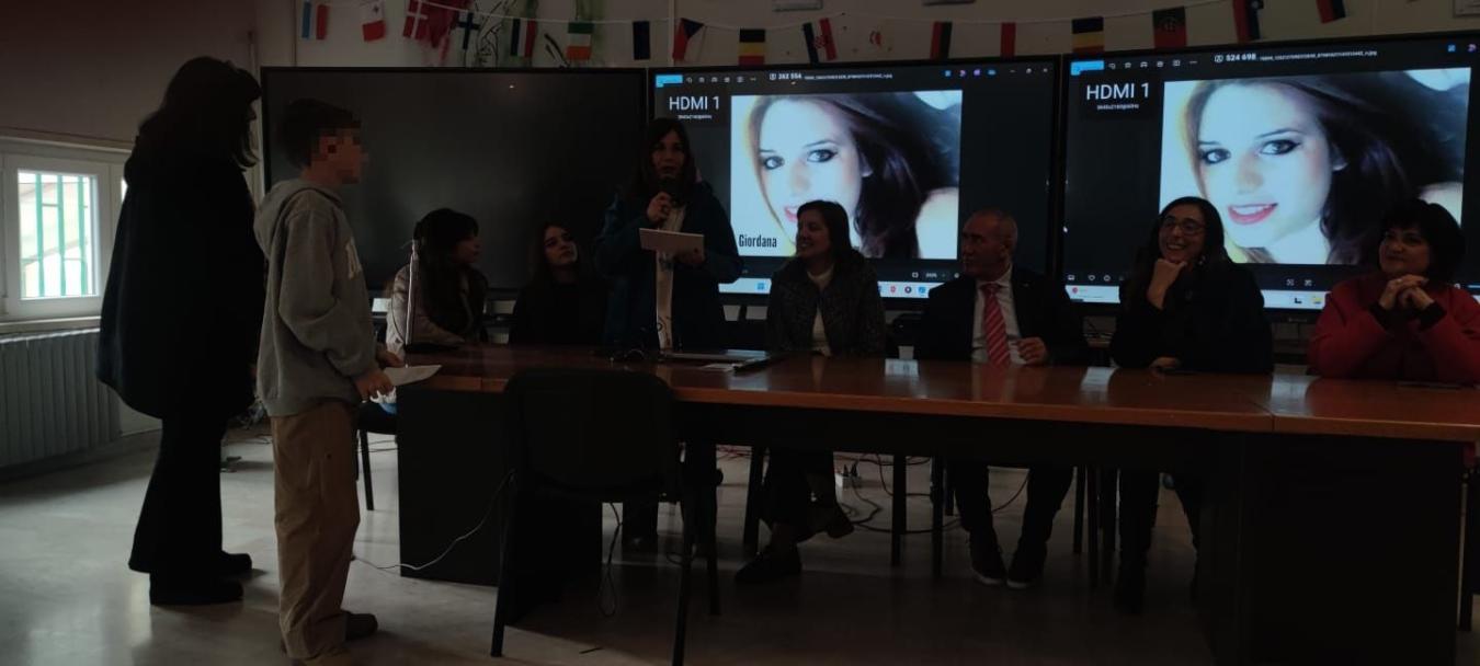 La mattinata ha avuto inizio nell’Aula Magna dell’Istituto, con la presenza della sig.ra Vera Squatrito, madre di Giordana Di Stefano, giovane vittima di femminicidio, di Erika, sorella di Giordana, e della giovanissima Asia. Presenti all’incontro la D.S., prof.ssa Maria Nicolosi, il Sindaco, dott. Angelo Pulvirenti, il vicesindaco, dott.ssa Giuseppa Gemmellaro, e l’assessora alla cultura, prof.ssa Letizia Bonanno.