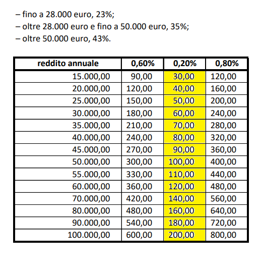 Per esemplificare il risparmio concreto: un cittadino con un reddito annuo di 15.000 euro pagherebbe 120 euro con un’aliquota di 0.80, ma pagando con l’aliquota attuale di 0.60 spende solo 90 euro, risparmiando così 30 euro. Similmente, per un reddito di 25.000 euro, il risparmio è di 50 euro, e per uno di 50.000 euro, il risparmio arriva a 100 euro.