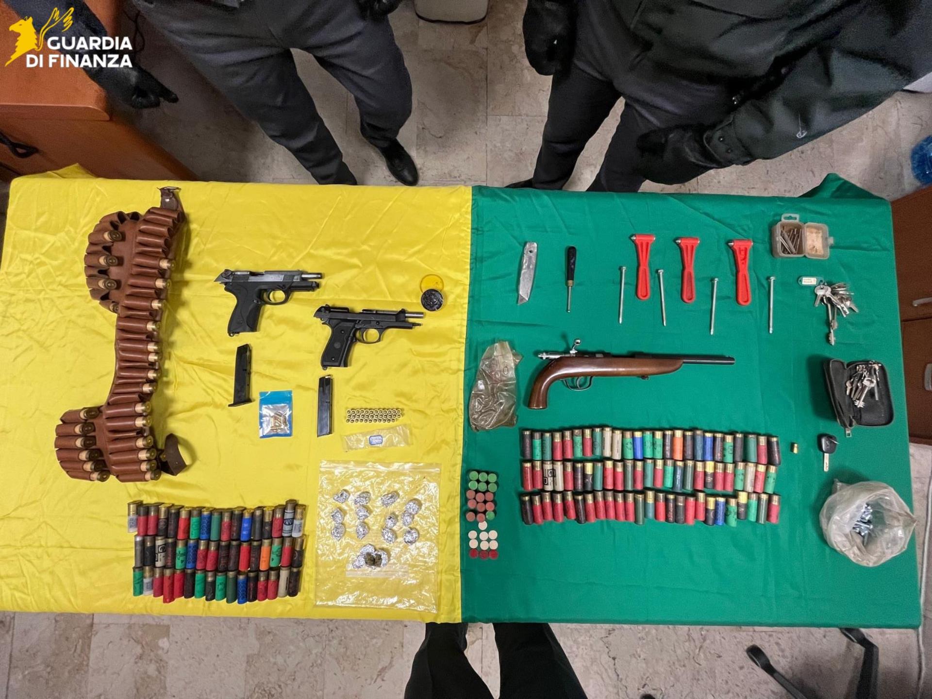 Tutto il materiale rinvenuto è stato posto sotto sequestro e messo a disposizione dell’Autorità giudiziaria, che disporrà ulteriori accertamenti balistici sulle armi e verifiche per l’eventuale rilevamento di impronte digitali.