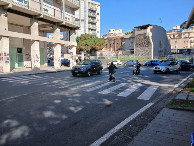 CATANIA – Attraversare la strada diventa ogni giorno più pericoloso. In piazza Europa, a Catania, uno dei nodi più trafficati della città, torna alta l’attenzione sulla sicurezza dei pedoni, dopo l’ennesimo episodio che ha sfiorato la tragedia.