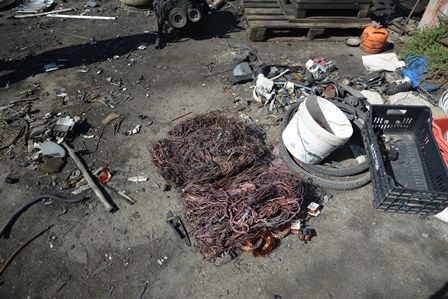 I rifiuti accatastati erano talmente tanti da essere chiaramente visibili dalla strada. Qui sono stati trovati rifiuti speciali pericolosi di vario tipo, consistenti per lo più in parti di autovetture (portiere, fari, pneumatici e motori), batterie esauste, motori di elettrodomestici, cavi di rame bruciato per un peso di circa 10 chili e altro materiale vario.