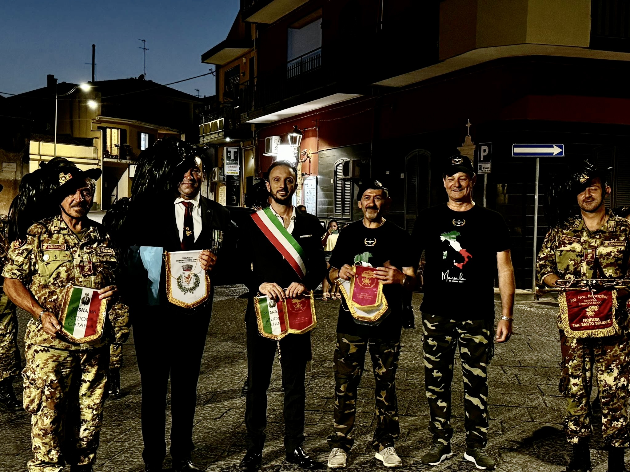 CAMPOROTONDO ETNEO – Penne al vento, la tradizionale, cadenzata, corsa di centottanta passi al minuto e… fiato alle trombe. Sì, è lei, la fanfara dei bersaglieri che lo scorso sabato pomeriggio, a supporto e insieme al (ricostruito) settimo scaglione ’86, sessantesimo battaglione Valtellina fanteria, hanno omaggiato il comune di Camporotondo Etneo.