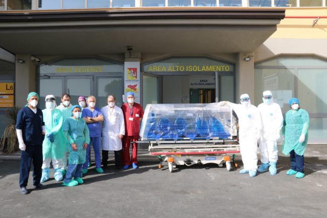 Si tratta di due barelle a pressione negativa, con avanzati standard di sicurezza e protezione, che saranno utilizzate per i trasferimenti dei malati Covid-19 e dei pazienti sospetti.