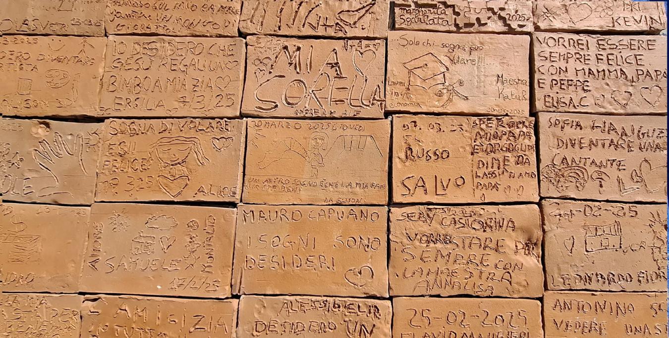 I sogni dei bambini confluiscono nell’opera “Cavalli nel vento” di Filippo Messina, un lungo bassorilievo in terracotta che rappresenta cento cavalli in corsa, simboli di libertà, forza, coraggio e visione.
