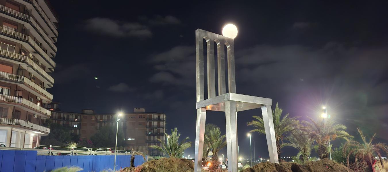 Poco più avanti si erge “Luna sola” di Giancarlo Neri: una sedia monumentale alta dieci metri, sormontata da una luna luminosa, metafora poetica di immaginazione e meraviglia.