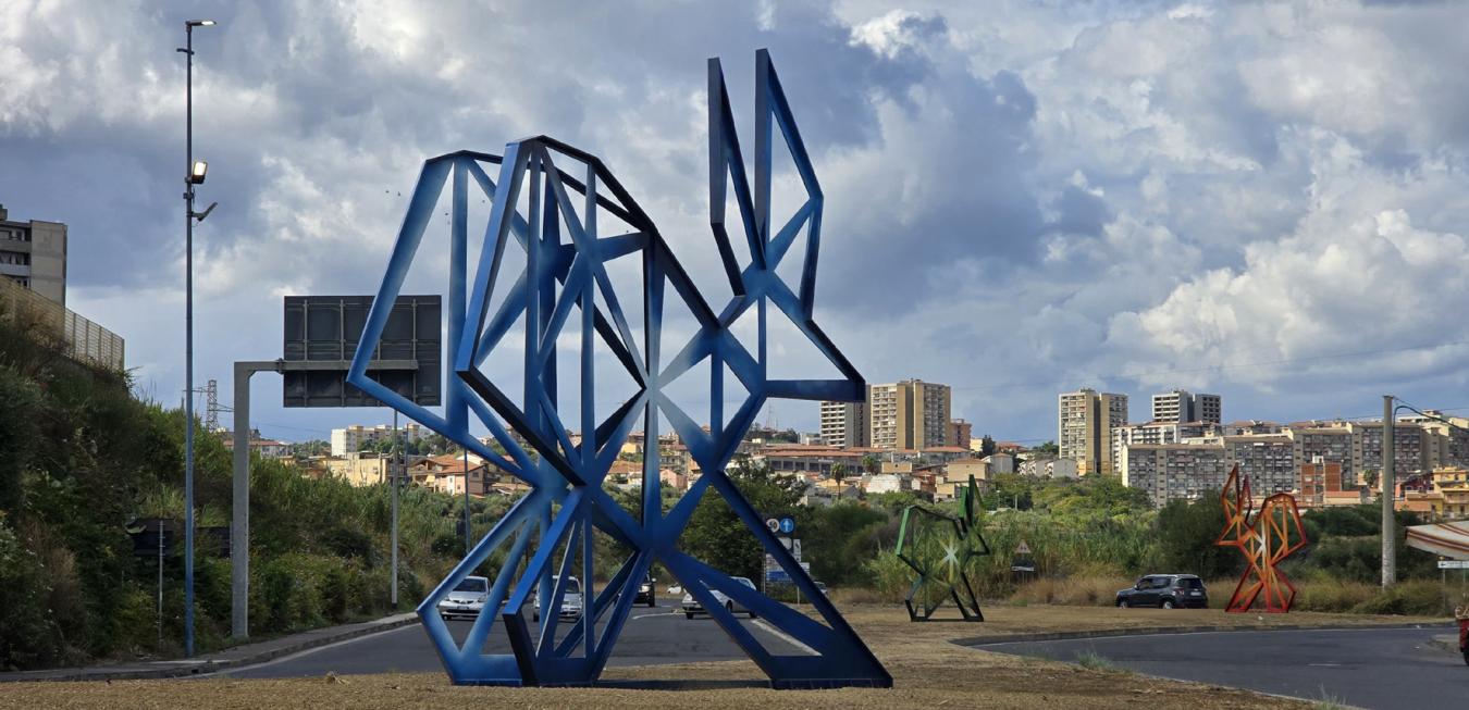Infine, sulla rotatoria d’ingresso al quartiere, l’opera “Leporinus” di Antonella De Nisco, con tre lepri in acciaio dipinto, richiama l’etimologia di Librino – “terra di lepri” – e restituisce al luogo la sua identità simbolica e storica.