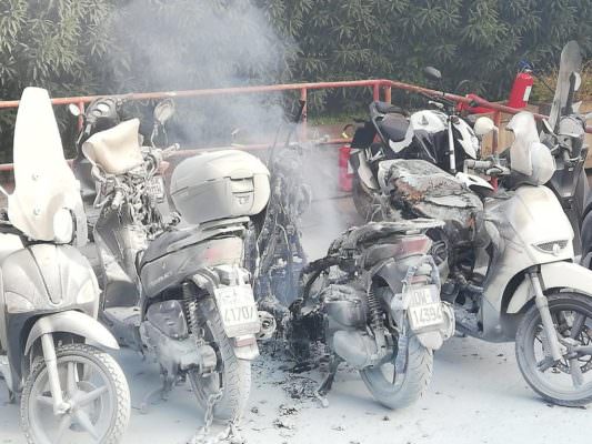 L’incendio ha completamente divorato il mezzo a due ruote, danneggiandone anche altri.
