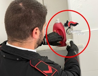 • 7 grammi di marijuana nascosti dietro un flacone di detersivo.