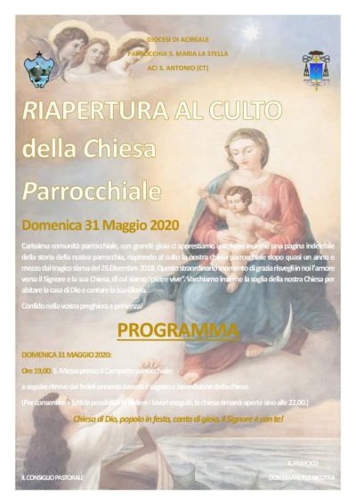ACI SANT’ANTONIO – Era stata chiusa subito dopo il sisma che il 26 dicembre del 2018 sconvolse una parte del territorio di Aci Sant’Antonio (CT) e domani, la chiesa parrocchiale simbolo della frazione di Santa Maria La Stella, verrà riaperta ed ospiterà nuovamente le funzioni.