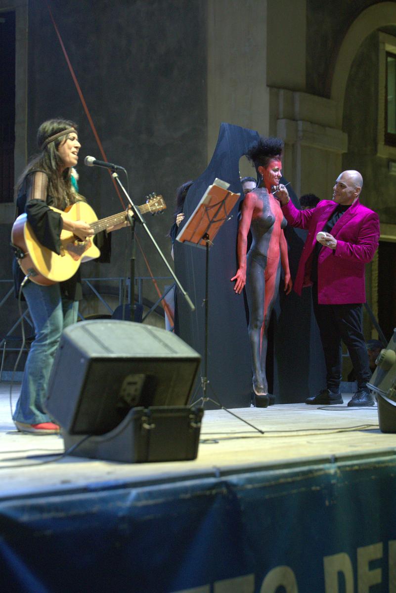 Un altro momento musicale, dedicato ancora a Siciliani in festa, con un medley di tarantelle di Vera Fuselli estimatrice di culture e canti di Sicilia. Non sono mancati i sorrisi con il cabarettista, comico ed intrattenitore Fabio Bosco. Ed ancora arte e musica in un connubio pieno di tradizioni e magia nel quale l’Artista e make-up Artist Dario Loris Cerfolli con “Tratti di Sicilia” e l’arte del body painting, con la sua modella Noemi Abramo, ha fatto da sfondo alla cantautrice Eliana Esposito, chitarra e voce.