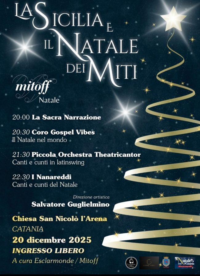 Per l’occasione andrà in scena “La Sicilia e il Natale dei Miti”, un viaggio artistico e culturale che unirà storia, tradizione, musica e spiritualità, articolato in quattro spettacoli che accompagneranno il pubblico in un percorso emozionante fino a un finale a sorpresa.