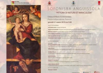 Presente come relatore il paternese dott. Alfio Nicotra, scopritore della pala . Gli studenti, magicamente coinvolti, hanno rivolto ai relatori diverse domande, mettendo in risalto le qualità artistiche di ritrattista, in quanto introdusse vari elementi di novità, trasformandola talvolta in pittura di genere. Con Sofonisba il ritratto non è solo l’immagine della persona, ma accenna alle sue storie: infatti, accanto ai volti straordinariamente somiglianti, dipinge spesso con minuzia descrittiva, elementi che aiutano a ricomporre la personalità del soggetto raffigurato, per esempio un medaglione, un libro aperto, un gioiello ecc.