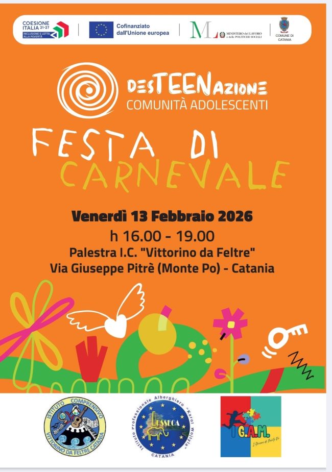 CATANIA – In occasione del Carnevale 2026, i plessi di Monte Po (Via Raccuglia e Via Lizio) dell’IPSSEOA Karol Wojtyla di Catania hanno preso parte all’evento “DesTEENazione Catania – Comunità Adolescenti”, promosso dal Comune di Catania e ospitato presso la palestra di un altro Istituto catanese.