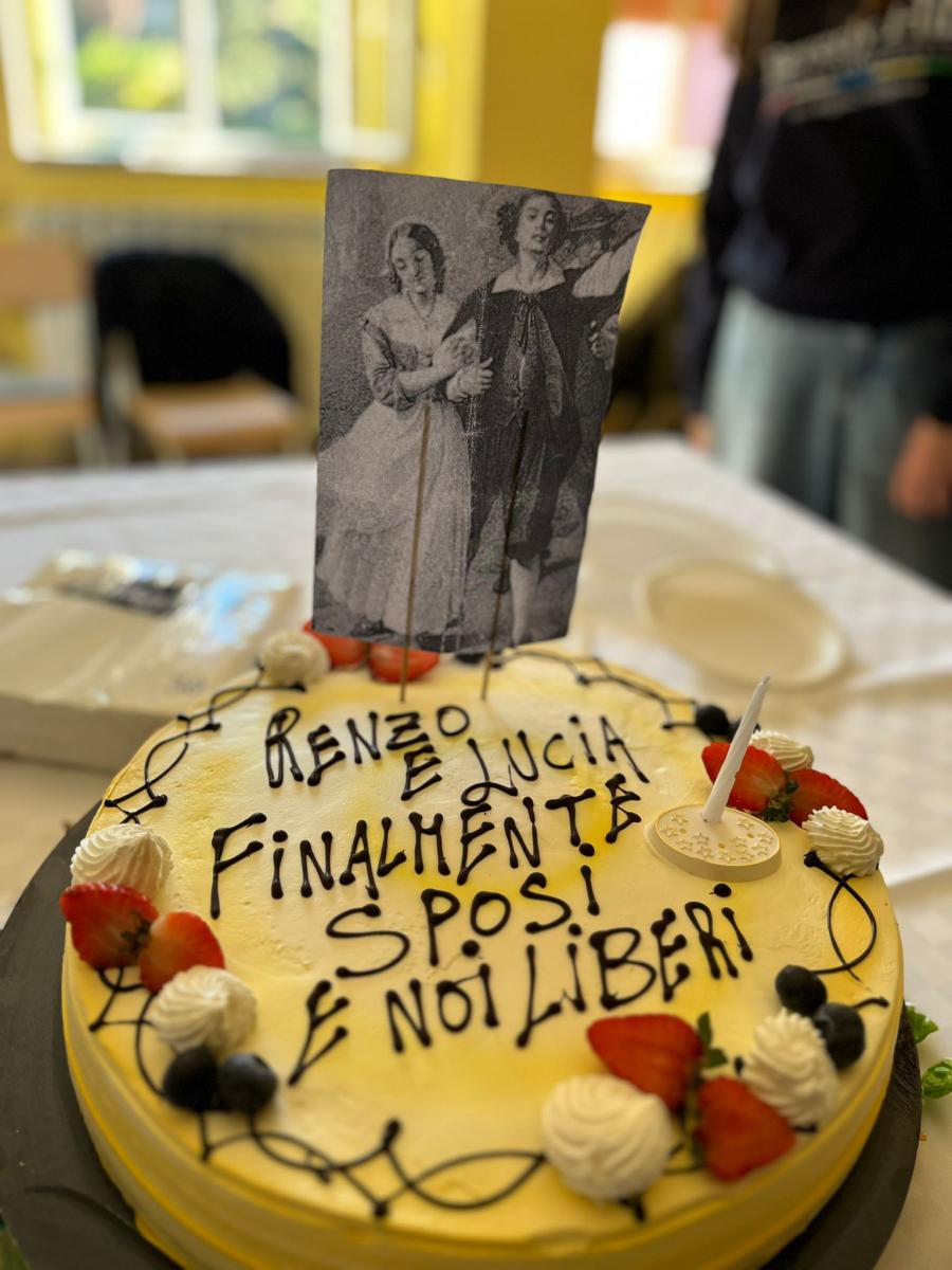 Questi sono stati studiati, analizzati e contestualizzati nel periodo storico del Seicento, rapportandoli ai giorni nostri. Gli alunni si sono interessati al momento riflessivo e pieno di suspence dell’incontro di Don Abbondio con i bravi, a quello esilarante del tentativo del matrimonio a sorpresa ed a quello tragico della morte di Cecilia e del dolore della sua mamma. Allora ho pensato di concludere tutto l’argomento con un compito di realtà che ha rivisitato la trasmissione televisiva: Per un pugno di libri”. Lì gli alunni, divisi in due squadre, si sono cimentati, rispondendo alla frase pronunciata dalla Dirigente scolastica, giudice della commissione.