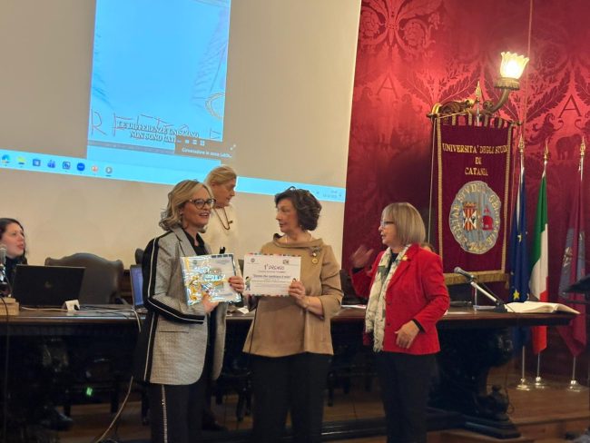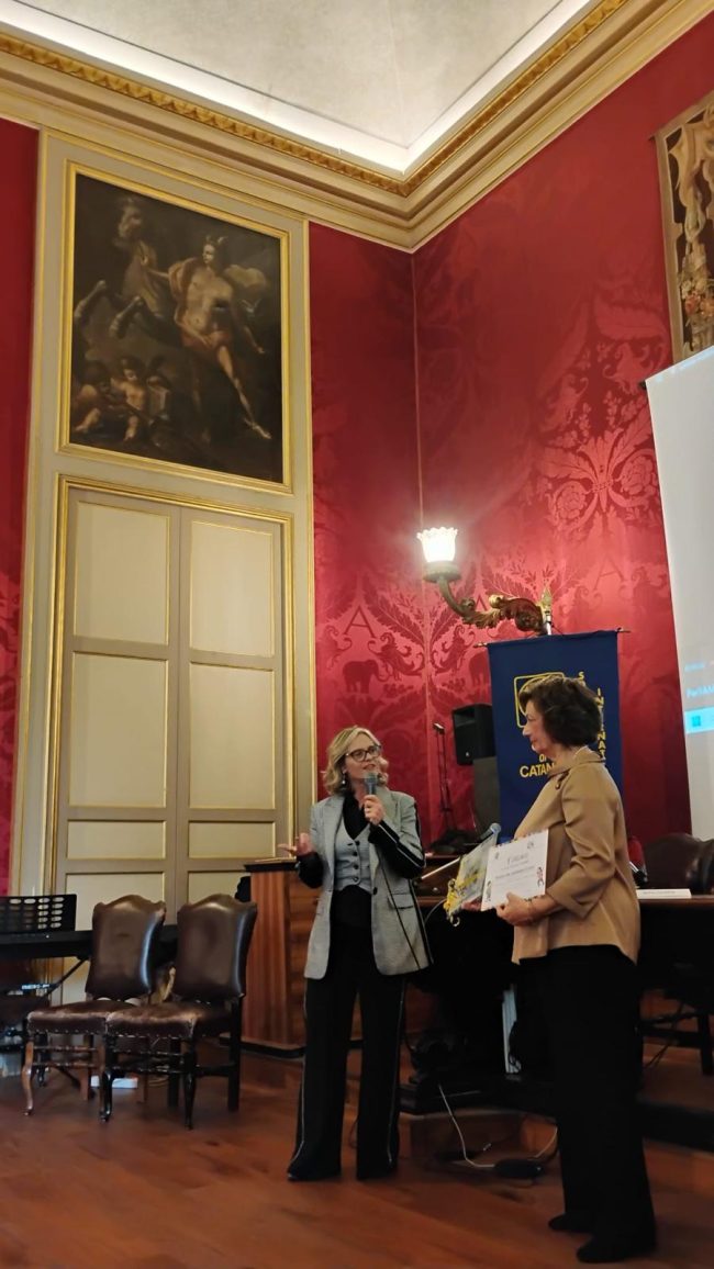 Alla cerimonia di premiazione, svoltasi il 18 dicembre 2025, presso l’Aula Magna del Palazzo Centrale dell’Università di Catania, sono intervenuti la Dirigente Scolastica dell’I.C. “F. De Roberto “ di Catania prof.ssa Cinzia Giuffrida, l’Assessore all’Istruzione Andrea Guzzardi e l’Assessore alle Pari Opportunità del Comune di Catania Viviana Lombardo, la Presidente di Soroptimist International Eleonora Brullo, delegazioni di studenti delle scuole del territorio, dell’I.C. Quasimodo e dell’Istituto John Dewey di Catania, oltre a numerosi istituti scolastici italiani collegati da remoto.
