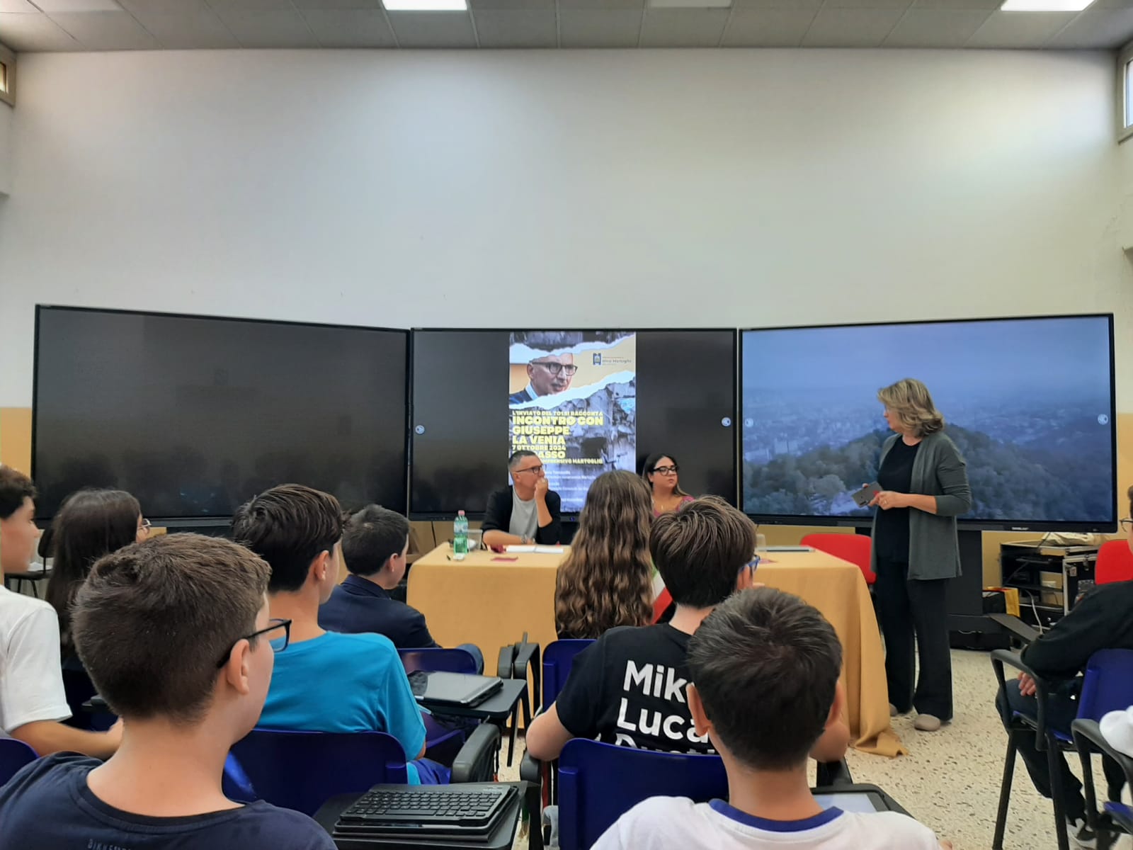 L’evento è stato inserito tra le attività programmate dal Consiglio Comunale dei Ragazzi dell’istituto, coordinato dalla Prof.ssa Mariella Chiantello. Giuseppe La Venia, inviato speciale del TG1 durante il Covid, in Ucraina subito dopo lo scoppio della guerra e in numerosi servizi giornalistici per la RAI, ha offerto ai ragazzi una prospettiva unica sugli eventi di grande attualità.