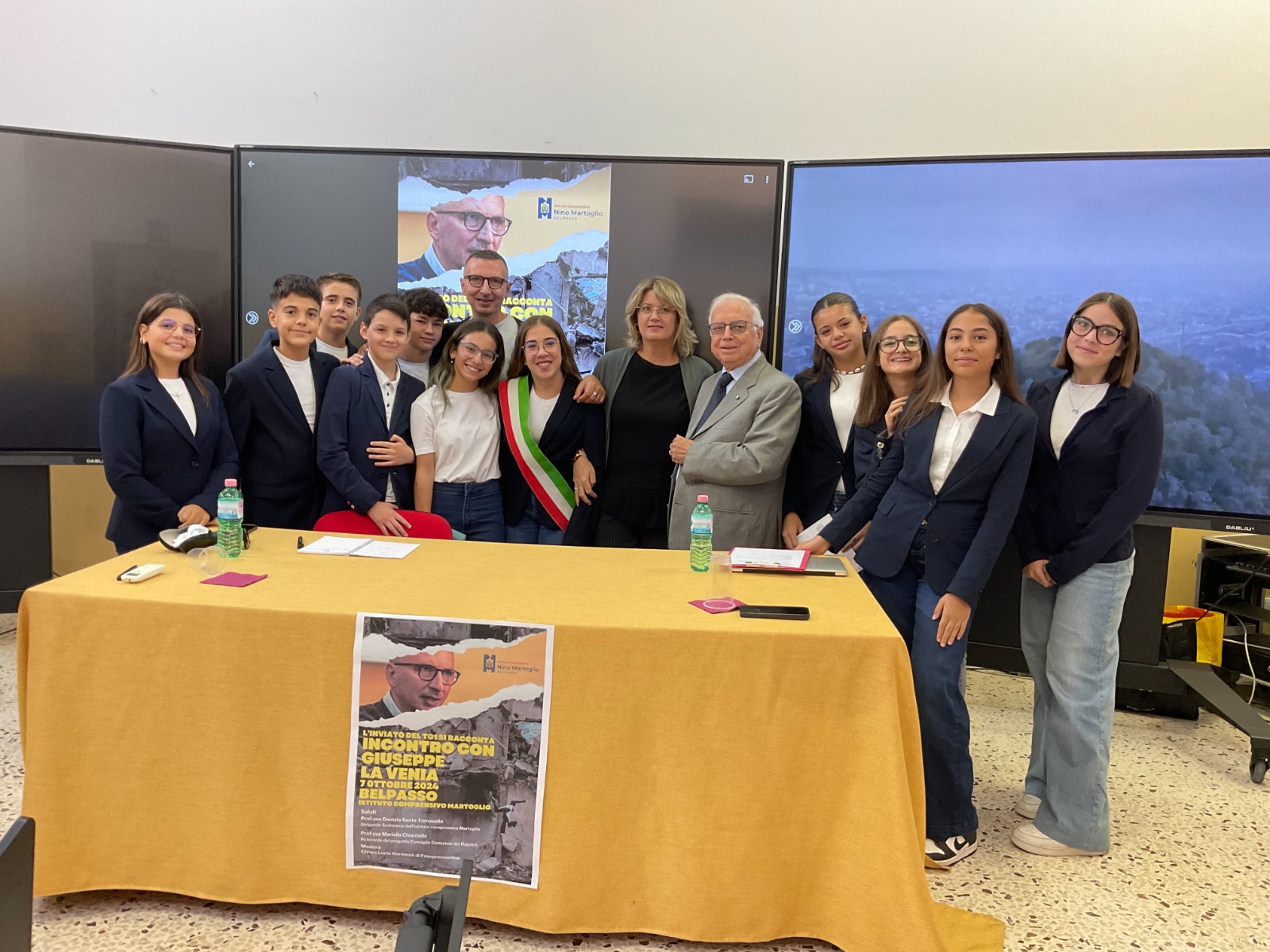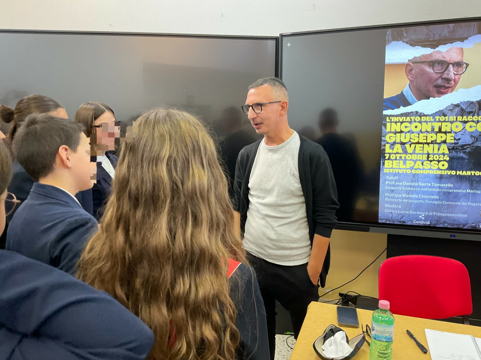 BELPASSO – Lunedì 7 ottobre, il giornalista del TG1 Giuseppe La Venia ha incontrato gli alunni delle classi terze dell’Istituto Comprensivo “Nino Martoglio” di Belpasso per parlare del mestiere del giornalista. L’incontro è stato reso possibile grazie alla lungimiranza della nuova Dirigente Scolastica, la Prof.ssa Daniela Santa Tomasello, che ha invitato gli alunni a vivere l’incontro come un momento formativo importante. “Ascoltare dalla viva voce di chi vive il giornalismo in prima persona fatti ed emozioni che non possono essere percepiti dallo spettatore televisivo”, ha sottolineato la dirigente.