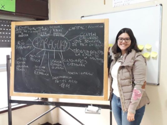 Nulla è più fruttuoso dello scambio culturale diretto tra ragazzi di età simile. È bello vedere come i ragazzi ascoltino con attenzione le sue lezioni e facciano domande personali e pertinenti. Grazie a Estefi in questi giorni gli alunni dell’istituto hanno conosciuto il Paraguay, visto paesaggi, esplorato con la fantasia attraverso i suoi racconti e anche avuto esperienze autentiche: Guampa, Bombilla e Yerba Mate per preparare insieme il “Tererè”, un tè paraguayano molto gustoso e anche “Chipa”: biscottini salati con un sapore del tutto diverso dai nostri. Inoltre, è arrivato in classe il “Guaranì”, moneta paraguayana ed è stato spiegato il suo valore rispetto all’euro. Poi, frasi in Guaranì e spiegazioni in spagnolo, con un accento latino diverso dal castellano che i ragazzi sono abituati ad ascoltare.
