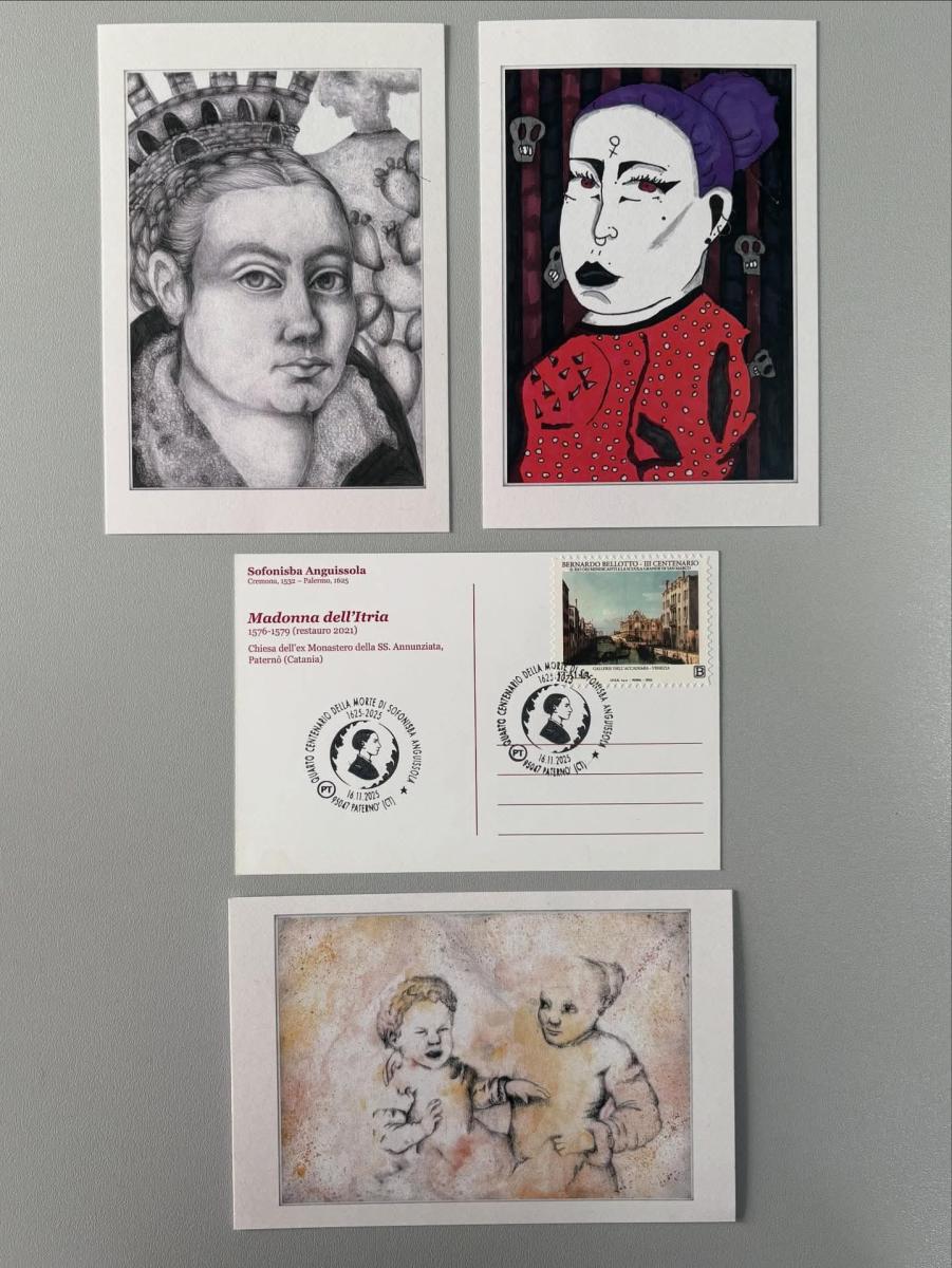 “Amici di Sofonisba” e di “ Città Viva”, si è tenuto lo speciale Annullo Filatelico dedicato a Sofonisba Anguissola le cui cartoline hanno riprodotto alcune opere selezionate delle giovani artiste rapisardiane quali Miriam Romeo, Chiara Giuffrida, Giada Testa.