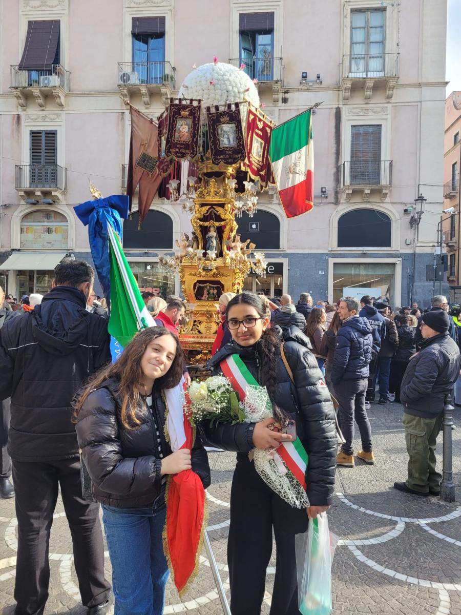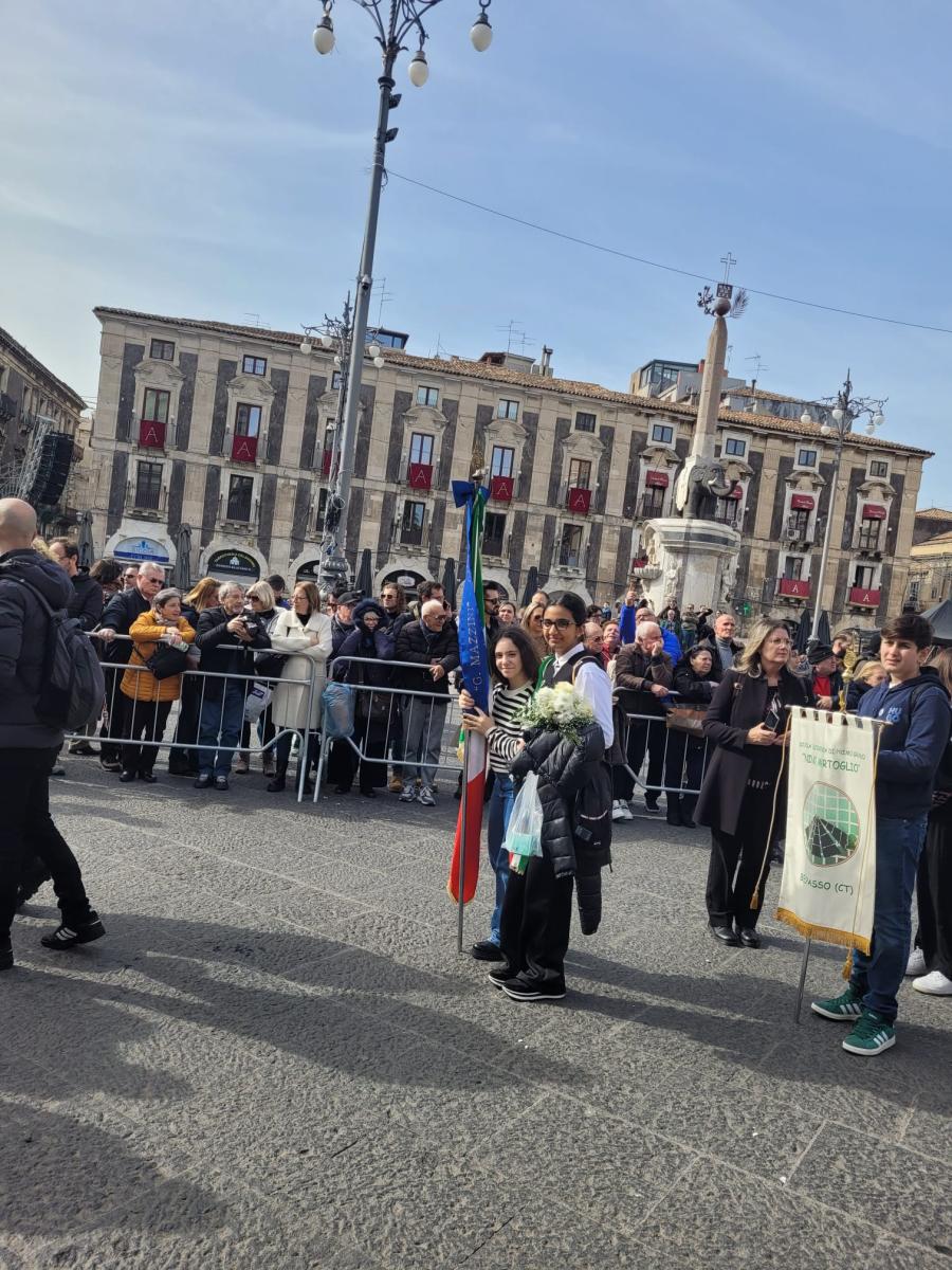 CATANIA – “È con immensa gioia e gratitudine che i nostri ragazzi siano stati testimoni delle Fede a S. Agata, la patrona del capoluogo etneo” – dichiara la dirigente dell’I.C. Giuffrida–La Mela di Adrano, Prof.ssa Tiziana Baratta – “Non facciamo mai mancare la Fede alla Santuzza col nostro pellegrinaggio che avviene ormai già da anni”.