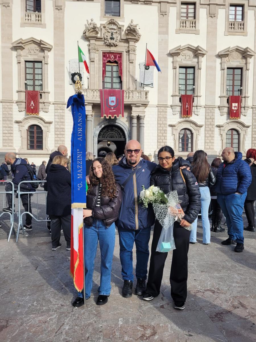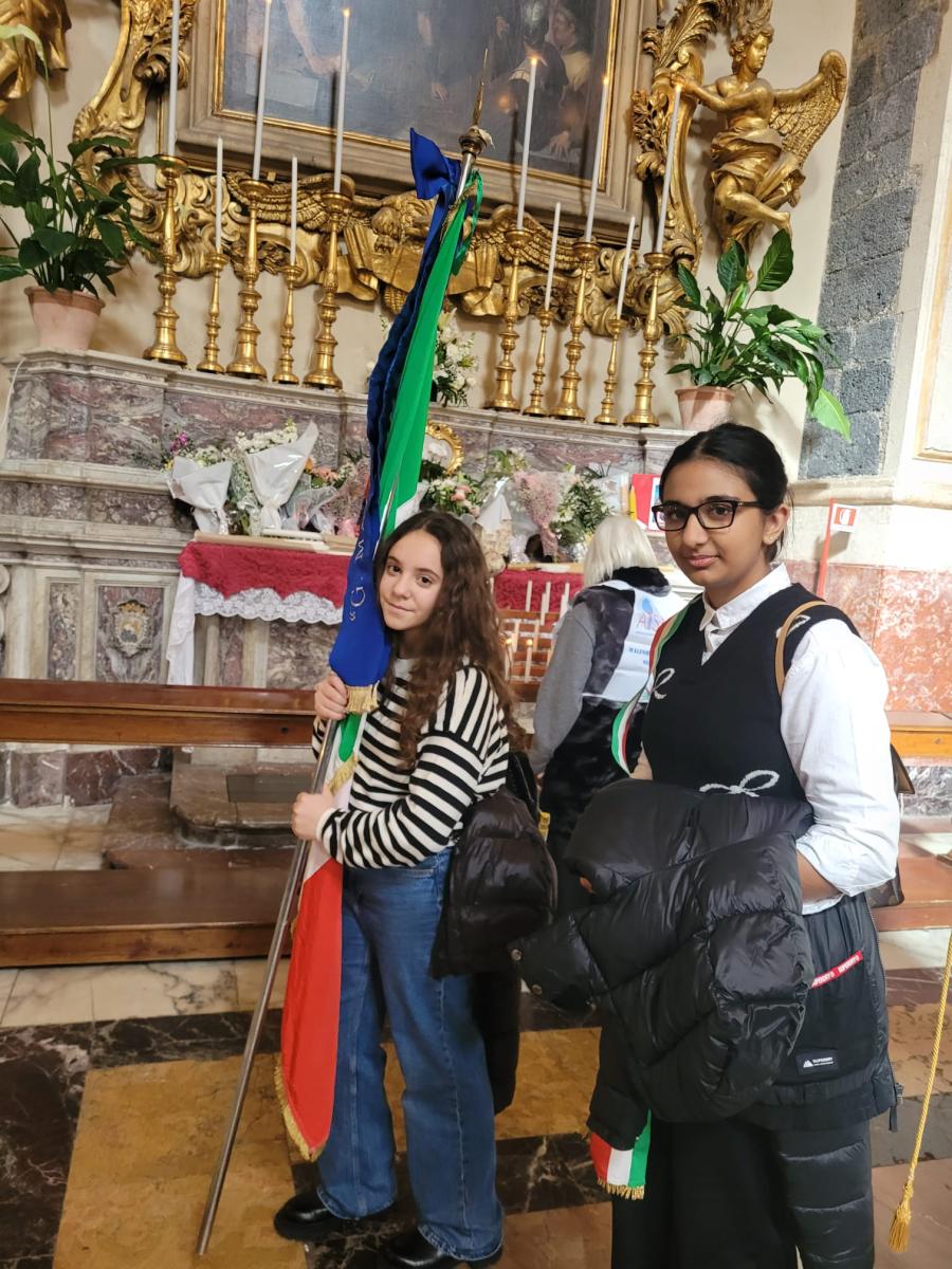 Martedì 3 Febbraio, pertanto, come da consuetudine, la delegazione del Consiglio comunale dei Ragazzi e delle Ragazze dell’I.C. “Giuffrida-La Mela”, guidata dal referente prof. Salvatore Palermo e dal Sindaco della scuola e Metropolitano Singh Ishleen, con i consiglieri guidati dal Presidente del Consiglio Di Primo Giusi, hanno ripetuto il rito della consegna dei fiori e della candela a S. Agata con tanto di gonfalone dell’istituto.