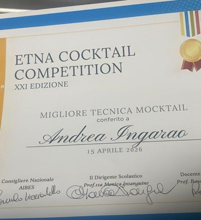 CATANIA – Grande successo per Andrea Ingarao studente dell’I.P.S.S.E.O.A. “K.Wojtyla” di Catania che ha conquistato il podio “miglior tecnica” durante la manifestazione Etna Cocktail Competition che si è svolta in un noto istituto alberghiero di Giarre.
