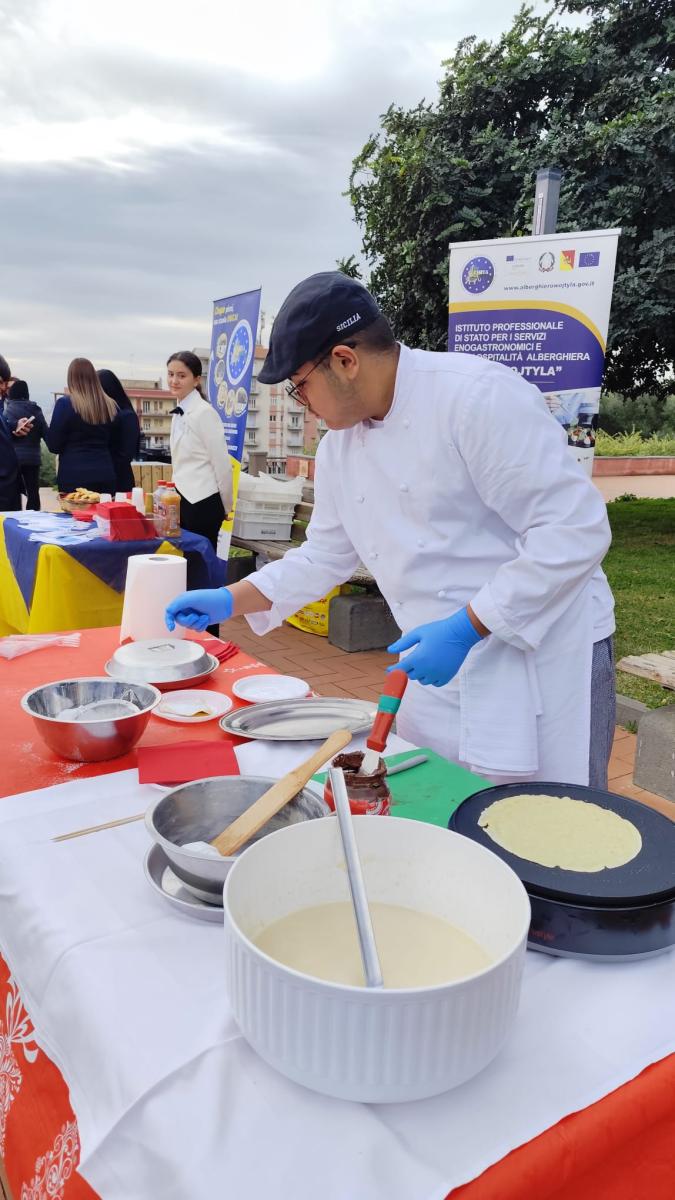 Nel suggestivo scenario del Parco Gioeni, tra biscotti e crêpes preparati con cura e professionalità, gli studenti, guidati dai docenti Antonio Virgolini, Andrea Rugolo ed Elena Costanzo, hanno dato prova di competenza, spirito di collaborazione e senso di responsabilità.