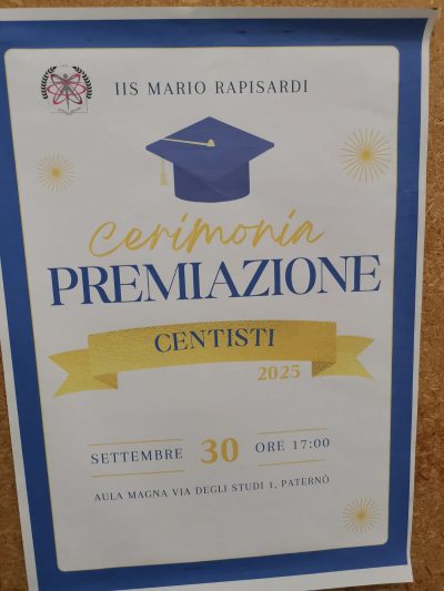 PATERNÒ – Si è svolto alle ore 17 di martedì 30 settembre, presso l’Aula Magna dell’Istituto di Istruzione Superiore “Mario Rapisardi” di Paternò, l’appuntamento con la prima edizione della cerimonia che ha festeggiato i “centisti” della maturità conclusasi a luglio di quest’anno 2025.
