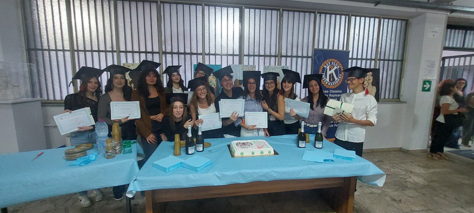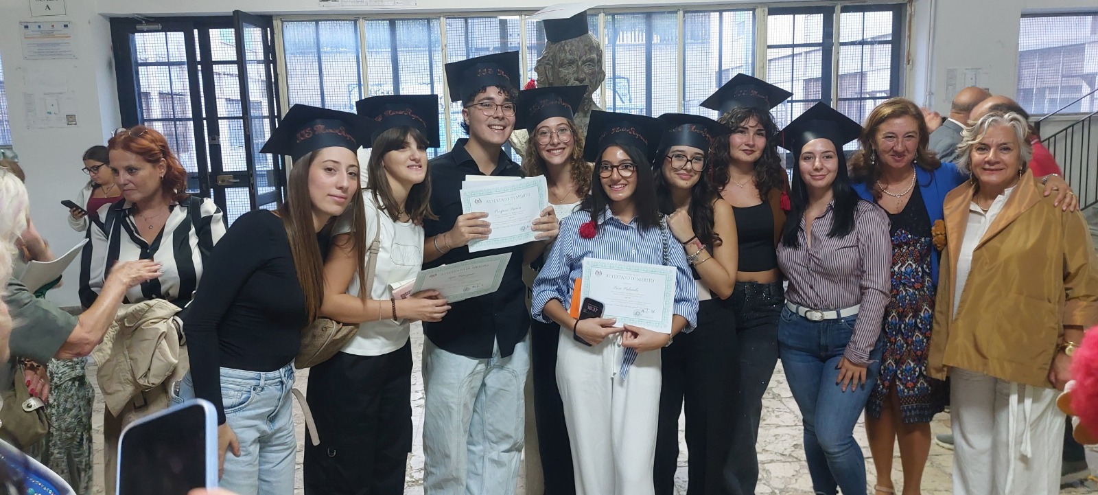 Nel corso dell’incontro, cui hanno preso parte insieme con i rappresentanti istituzionali diversi familiari dei festeggiati, che hanno gremito per intero la sala, sono stati assegnati gli attestati di merito e i “cappelli del diploma” confezionati per l’occasione ai seguenti alunni in ordine alfabetico: Chiara Atanasio (V B Liceo delle Scienze Umane), Sofia Capezzuto (V A Liceo Classico), Maria Helena Capizzi (V B Liceo delle Scienze Umane), Agnese Maria Cartalemi (V A Liceo Classico), Andrea Catena (V L Liceo Artistico), Samantha Costanzo Zammataro (V A Liceo Classico), Federico Faro (V A Istituto Tecnico Tecnologico), Christian Franchina (V A Istituto Tecnico Tecnologico), Monica Greco (V B Liceo delle Scienze Umane), Carmelo Guglielmino (V L Liceo Artistico), Désirée Laudani (V B Liceo delle Scienze Umane), Virginia Gloria Morina (V A Liceo Classico), Sara Palumbo (V A Liceo Classico), Sofia Parisi (V A Liceo Classico), Michela Rapisarda (V L Liceo Artistico), Carmelo Russo (V B Liceo delle Scienze Umane, lode), Prospero Savoca (V A Liceo Classico), Alessandra Sinnonio (V A Liceo Classico, lode), Alessandra Stissi (V B Liceo delle Scienze Umane).
