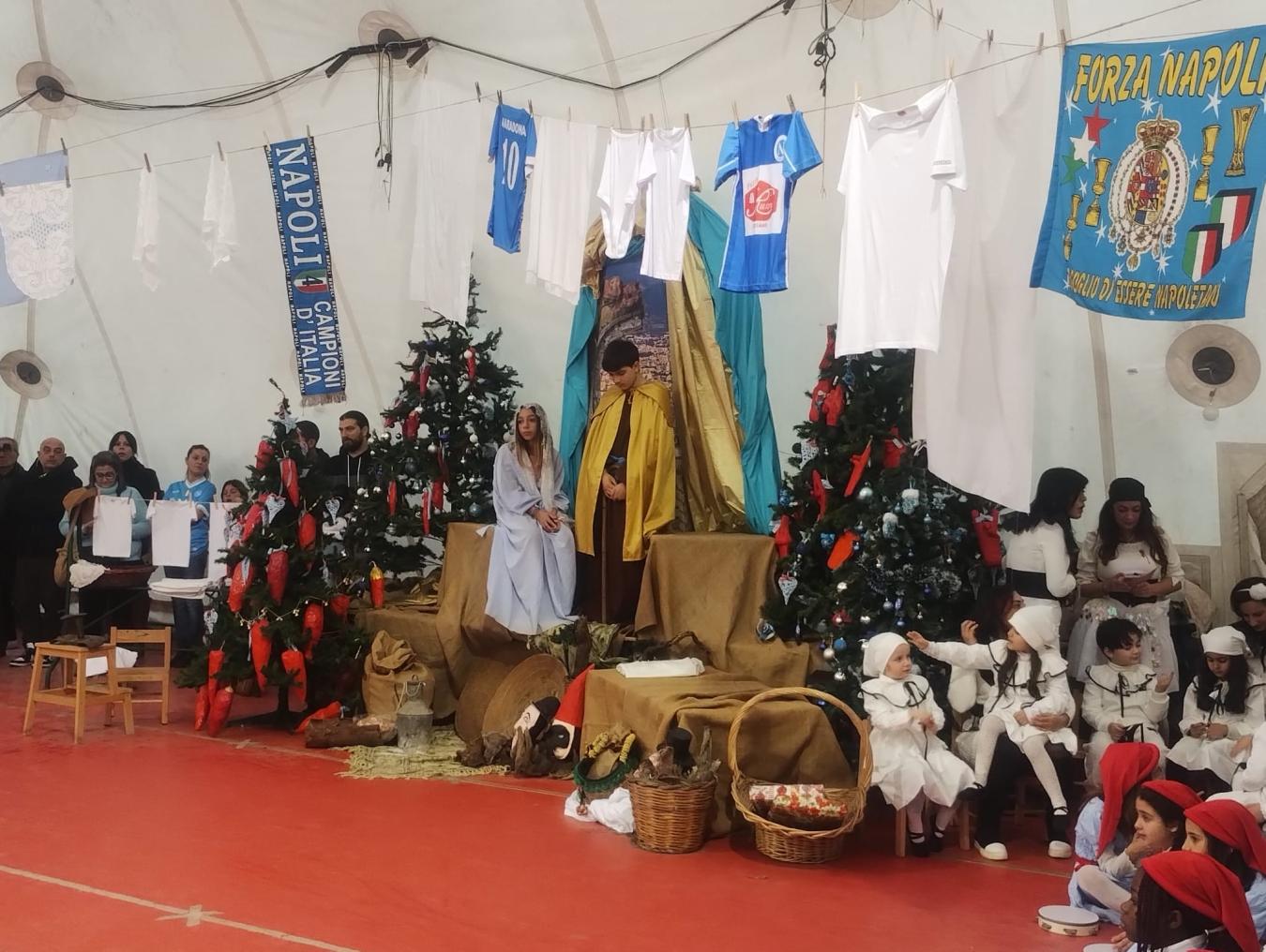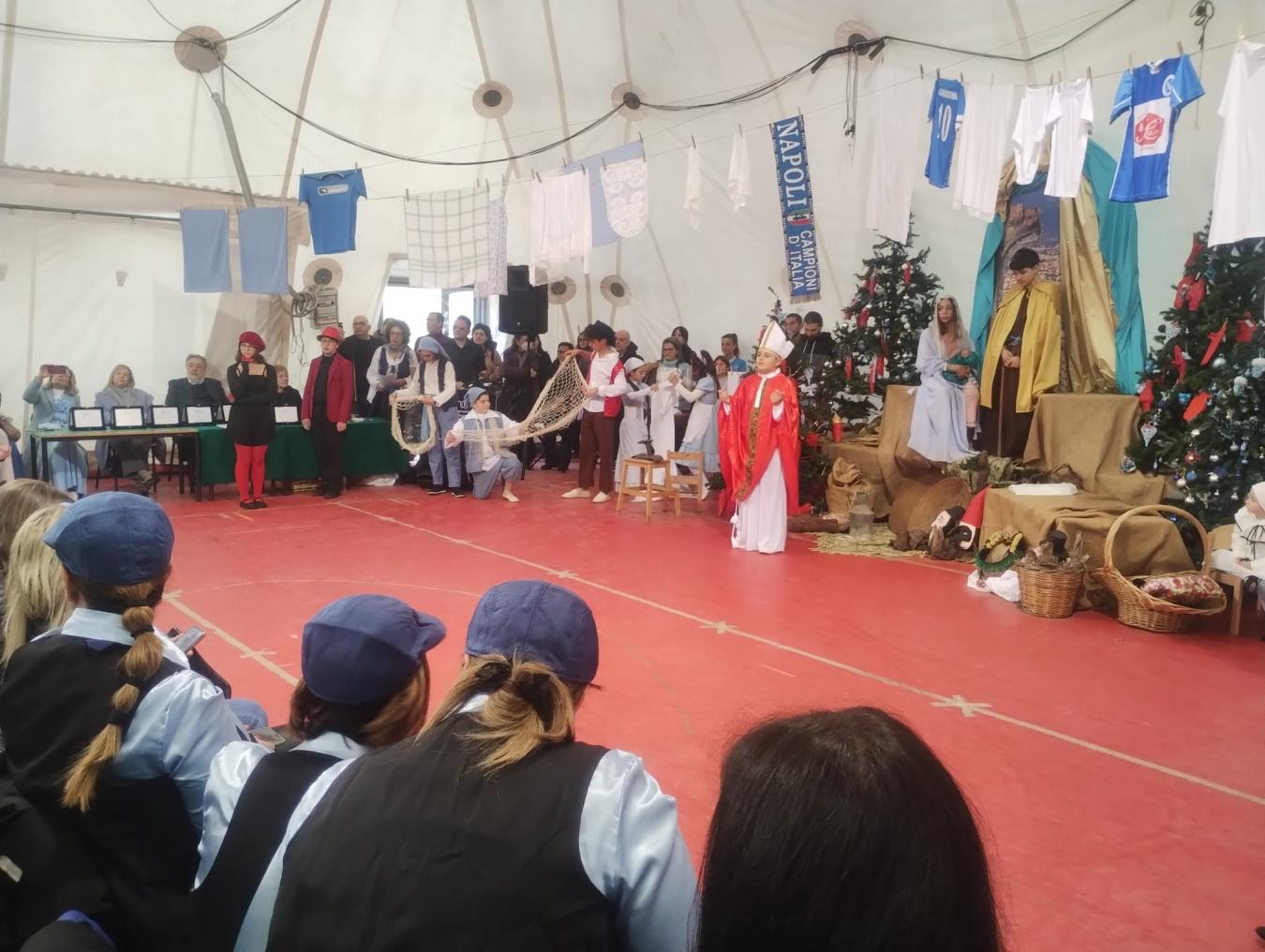 Entrando anche nella dimensione religiosa e culturale più profonda, è stato pure realizzato un presepe napoletano dal vivo, cuore pulsante dell’evento, capace di raccontare non solo la Natività, ma anche la vita, i mestieri e le emozioni di un popolo. Un presepe che parla di comunità, di speranza e di quotidianità, proprio come accade da secoli nei vicoli di Napoli.