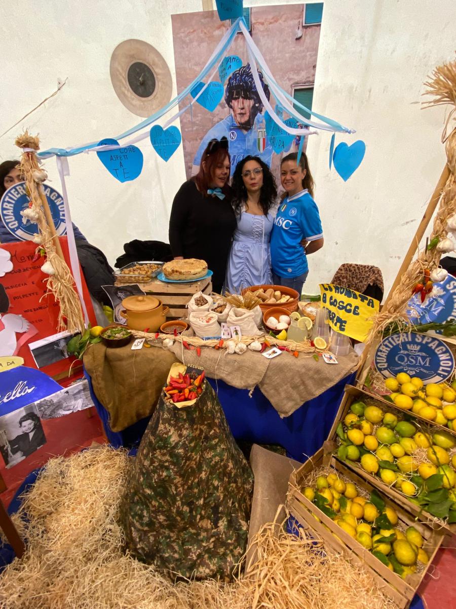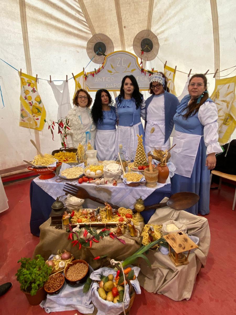 Ogni tavolo che rappresentava una classe con una tematica diversa, hanno creato delle vere opere d’arte, ricostruendo ogni spaccato dei quartieri o delle attività di Napoli e offrendo i loro prodotti alla platea: la pizzeria con forno e pizze, il venditore di frutta e limonata, bevuta “a cosce aperte”, come si legge nei quartieri di Napoli, il mare rappresentato in tutta la sua bellezza, il tavolo della pasta fresca e cucinata, il Cinema , con i personaggi che hanno incantato il grande schermo, da Totó a Massimo Troisi, il tavolo del presepe che ha riportato pezzi di arte dalle mani di un nonno che lo hanno realizzato, il tavolo del calcio Napoli , quello della bandiera, quello dei dolci di Napoli e tanto altro. Il tutto rappresentato fedelmente. È stato indetto un concorso per premiare le classi che si sono distinte per originalità o per altre caratteristiche e sono distribuite 4 targhe, seppure è stato davvero difficile scegliere per la giuria rappresentata dalla ex maestra Enza Gatto, il Preside Salvatore Impellizzeri e la Vicaria Giusy Bruno.