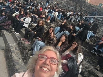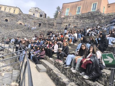 L’ultima tappa delle passeggiate sono stati il teatro antico e L’Odeion, uno degli edifici più importanti di Catania, coniugato perfettamente con il centro cittadino.Gli studenti, con l’ausilio di una guida, hanno potuto cogliere l’originario splendore del teatro e immaginato i giochi acquatici vista la presenza di una falda che oggi è ben visibile a tutti grazie alle abbondanti piogge invernali.Gli studenti hanno anche fruito dell’antiquarium” nell’elegante sala che precede l’uscita. Dal Teatro e dal vicino Odeon, si è raggiunta l’ultima tappa e cioè le terme della Rotonda,con le evoluzioni e trasformazioni che l’ultimo complesso termale,fruito oggi , ha subito nel tempo.