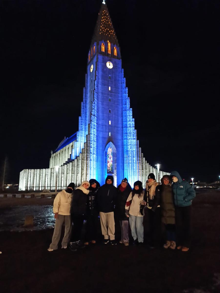 Indimenticabili anche le escursioni naturalistiche, parti integranti del percorso per il raggiungimento degli obiettivi didattici scientifici, geologici e di consapevolezza del cambiamento climatico. Il celebre Golden Circle ha regalato scenari mozzafiato: geyser in eruzione, cascate imponenti e paesaggi vulcanici unici al mondo. La Secret Lagoon ha offerto un momento di relax immersi nella natura geotermica islandese. E ancora, la spettacolare Glacier Lagoon con i suoi iceberg galleggianti e la suggestiva Spiaggia dei Diamanti, dove frammenti di ghiaccio brillano come cristalli sulla sabbia nera, hanno lasciato tutti senza parole. Il clima, sorprendentemente favorevole per gran parte del soggiorno, ha accompagnato le attività del gruppo, salvo poi ricordare la sua imprevedibilità: una violenta tempesta di neve e vento ha infatti bloccato tutti i voli da e per l’Islanda per due giorni. Ma anche questo imprevisto si è trasformato in un’opportunità di crescita.