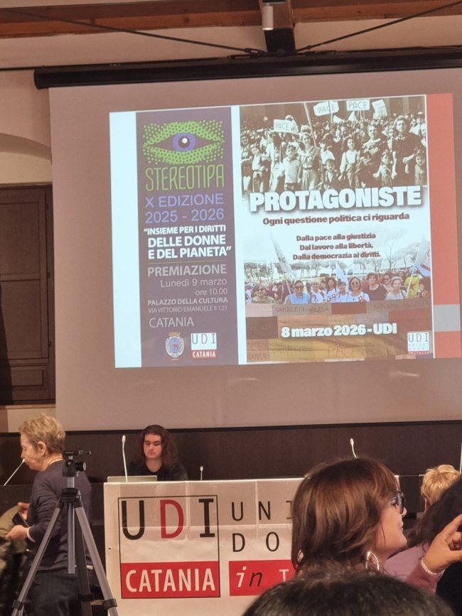 CATANIA – Il 9 marzo 2026, gli studenti delle classi 2° B Elettronica dell’ITI S. Cannizzaro di Catania, accompagnati dalle professoresse Agata De Martino, Maria Concetta Corrado e Marisa De Domenico, e 4° A Energia, accompagnati dalle professoresse Monica Cutrona e Valentina Lo Nigro, hanno partecipato alla giornata conclusiva della X edizione del progetto “Stereotipa, Insieme per i diritti delle donne e del pianeta”, organizzato dall’UDI Catania, presso il Palazzo della Cultura.