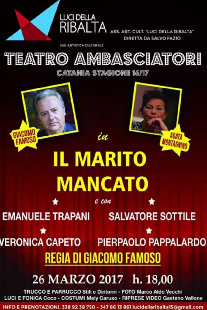 CATANIA – A benedire l’ingresso della bella stagione, portatrice di gioia e allegria, ci pensa anche Luci della Ribalta. Domenica 26 Marzo, ore 18:00 al teatro “Ambasciatori” di Catania, va in scena “Il Marito Mancato”. Arriva sul palco del noto teatro catanese il quarto appuntamento del cartellone stagionale della compagnia diretta da Salvo Fazio.