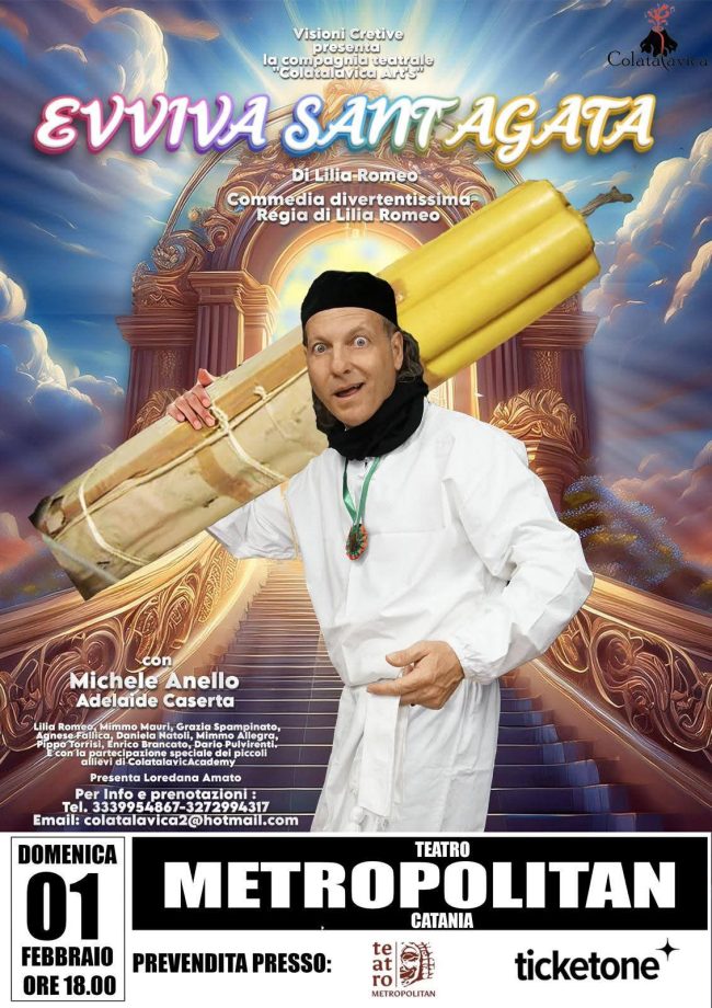 CATANIA – Domenica 1 febbraio alle h. 18 00 al teatro Metropolitan di Catania, in occasione delle festività dedicate a Sant’Agata, la compagnia teatrale Colatalavica debutta con lo spettacolo teatrale “Evviva Sant’Agata!”.