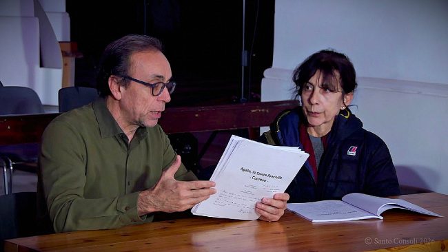 “Se la fanciulla Agata – ha detto Davide Sbrogiò, che interpreta in scena Quinziano, parlando del martirio – crede in un unico Dio e in Cristo, il proconsole dell’imperatore Decio è invece espressione di un culto pagano e politeista. E questo è il motivo del suo scontro violentissimo con la straordinaria Agata, dalla quale all’inizio si sentirà attratto. Ma il conflitto culminerà nella condanna a morte che la fanciulla, dopo esser stata torturata, dovrà subire”.