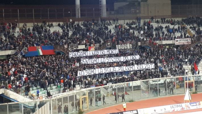 1′ – Match iniziato. Primo pallone calciato dalla formazione ospite che si schiera in maglia bianca. Da sottolineare come i tifosi rossazzurri non si esibiranno in cori durante i primi minuti di gioco in rispetto delle vittime di Casteldaccia