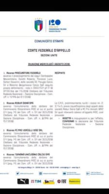 Una risalita importante: il ricorso sul Novara applicato dalla FIGC è stato respinto, pertanto i piemontesi possono già festeggiare per aver vinto la battaglia legale ritornando in cadetteria.