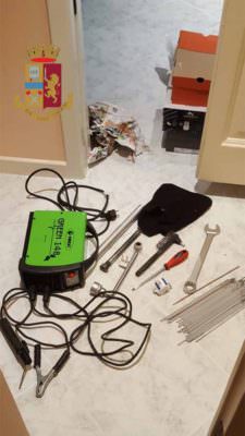 Avevano ancora addosso guanti, torcia e maschera da saldatore; all’interno dell’immobile, completamente a soqquadro, avevano invece abbandonato la saldatrice e gli altri attrezzi con cui erano già riusciti a forzare la cassaforte.